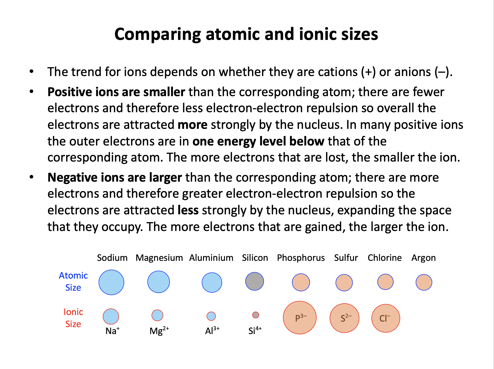 2: The ionic radius of chlorine is greater than its atomic radius