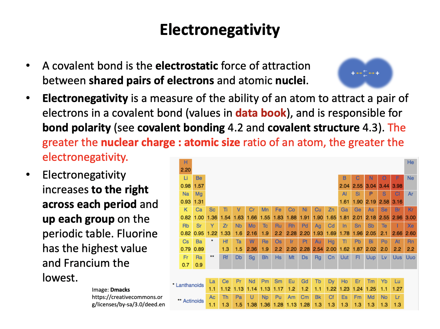 Terminology is important, so learn the vocabulary thoroughly using the flash cards. Electrostatic attractions between the protons in the nucleus and the electrons in the outer/valence shell form the basis for many periodic trends: the force of attraction increases as the magnitude of the charge increases and decreases with distance between the charges. You should be able to explain each of the trends covered here across periods and down groups.