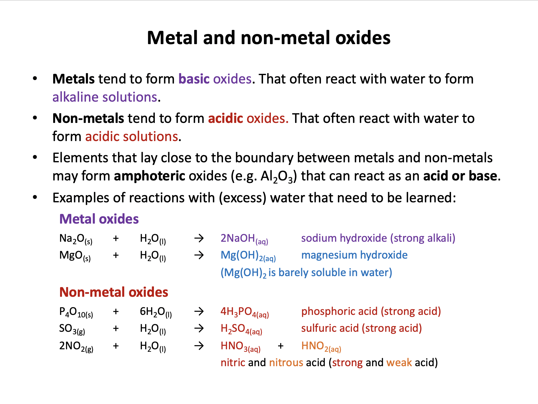 1: Metals tend to form acidic oxides.