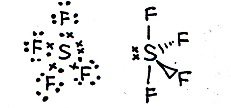 Draw a Lewis (dot-cross) diagram for sulfur tetrafluoride (SF4).