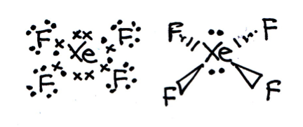 Draw a Lewis (dot-cross) diagram for xenon tetrafluoride (XeF4).
