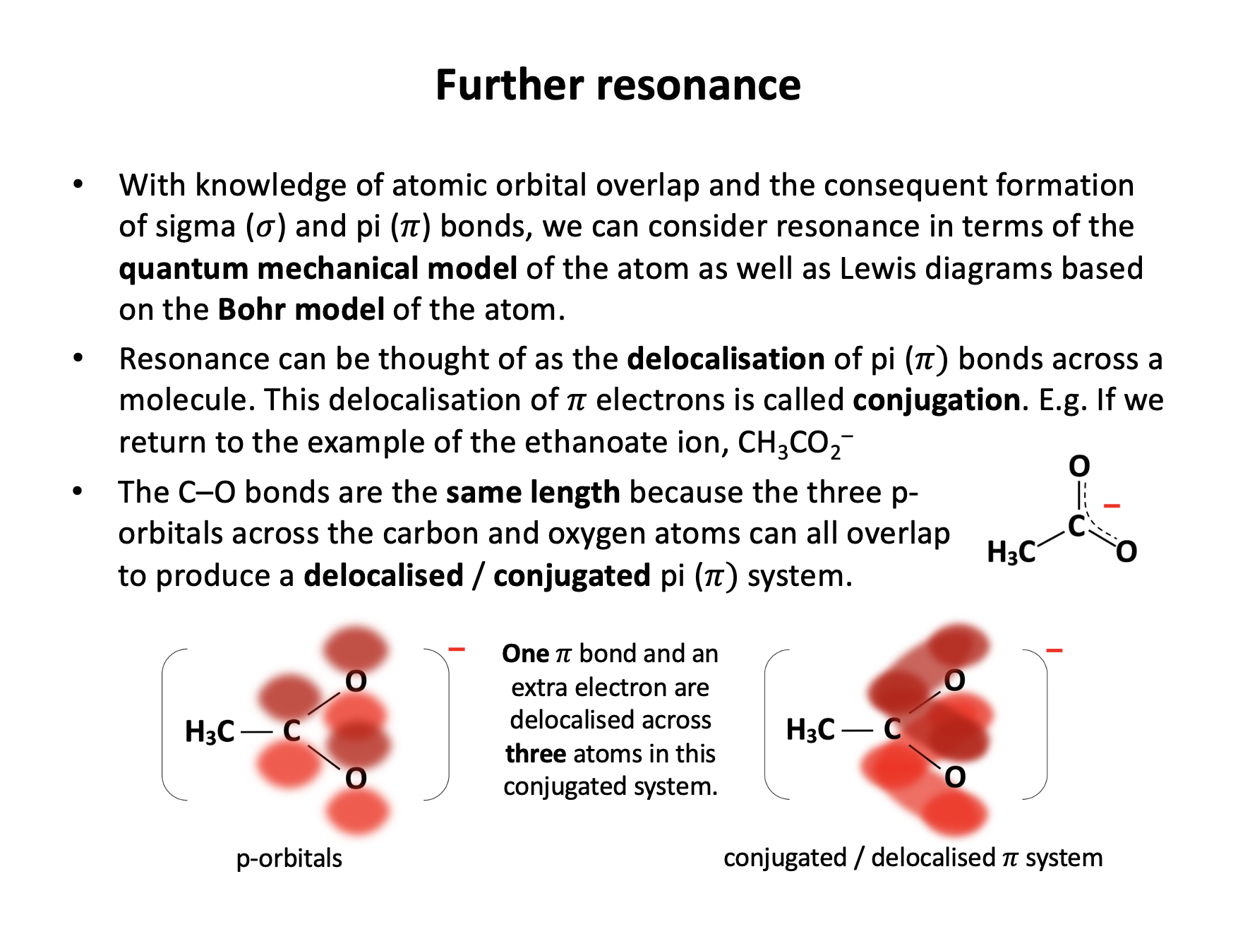 a sigma (σ) bond*, a pi (π) bond*, VSEPR theory*, formal charge, valence electrons, expanded octet, resonance structures, delocalised electrons, conjugated system.