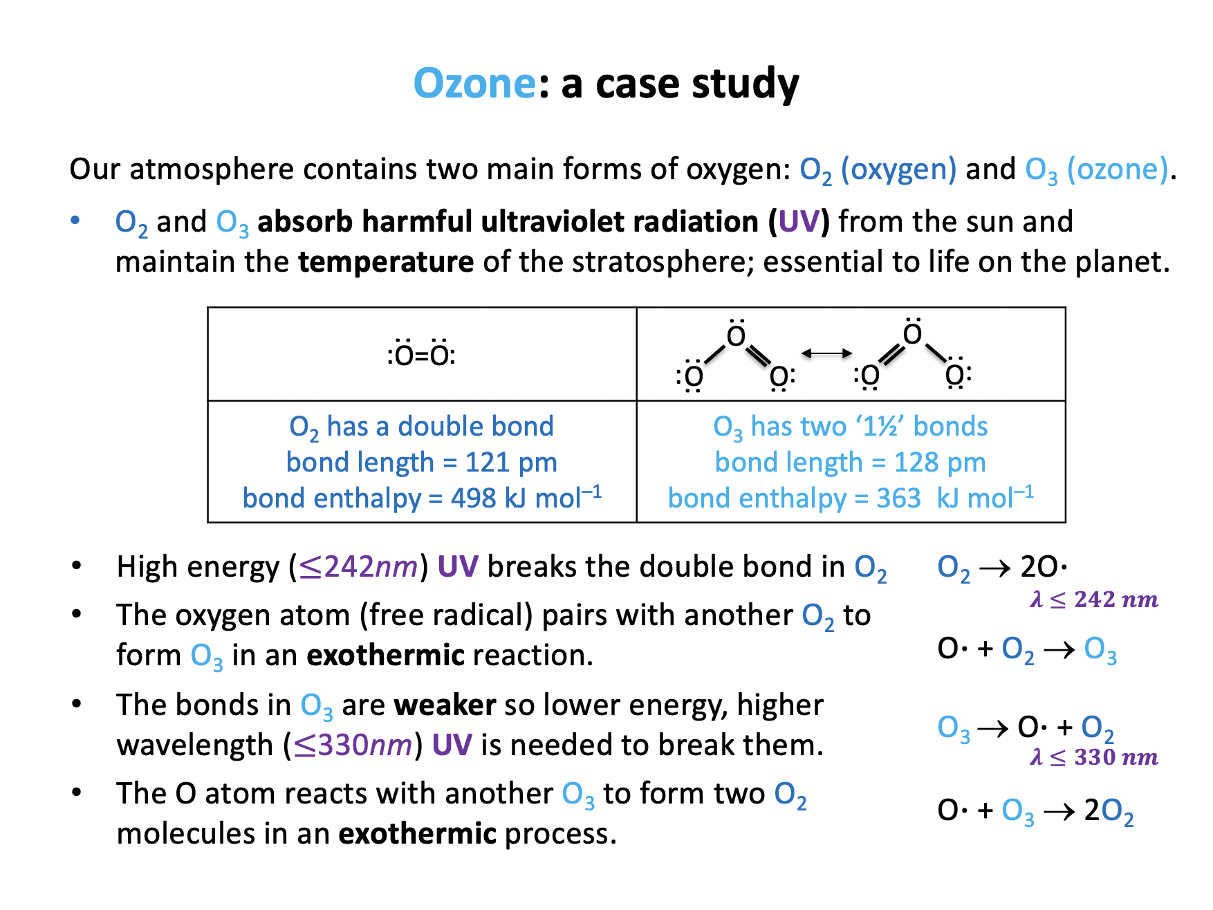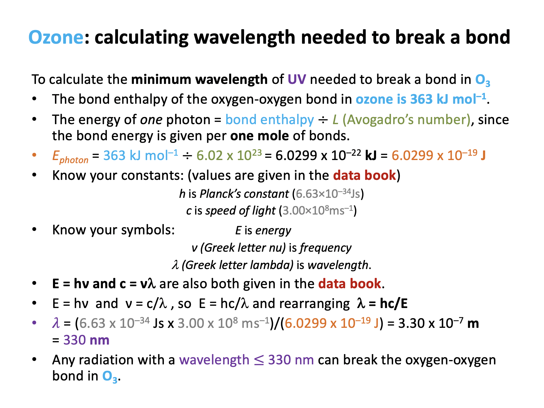 Calculator question: Given that the bond energy of an O=O bond is 498 kJ mol–1, calculate the wavelength of light (in metres) required to break a single O=O bond.