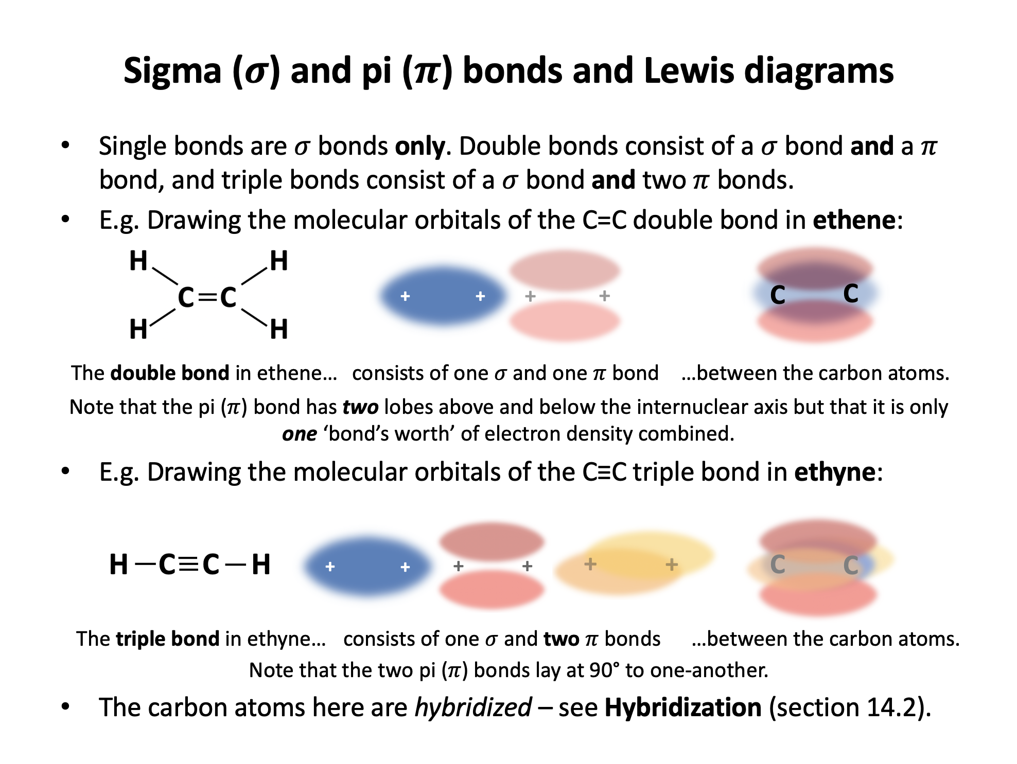 There are therefore 3 sigma bonds and 2 pi bonds present in ethyne.