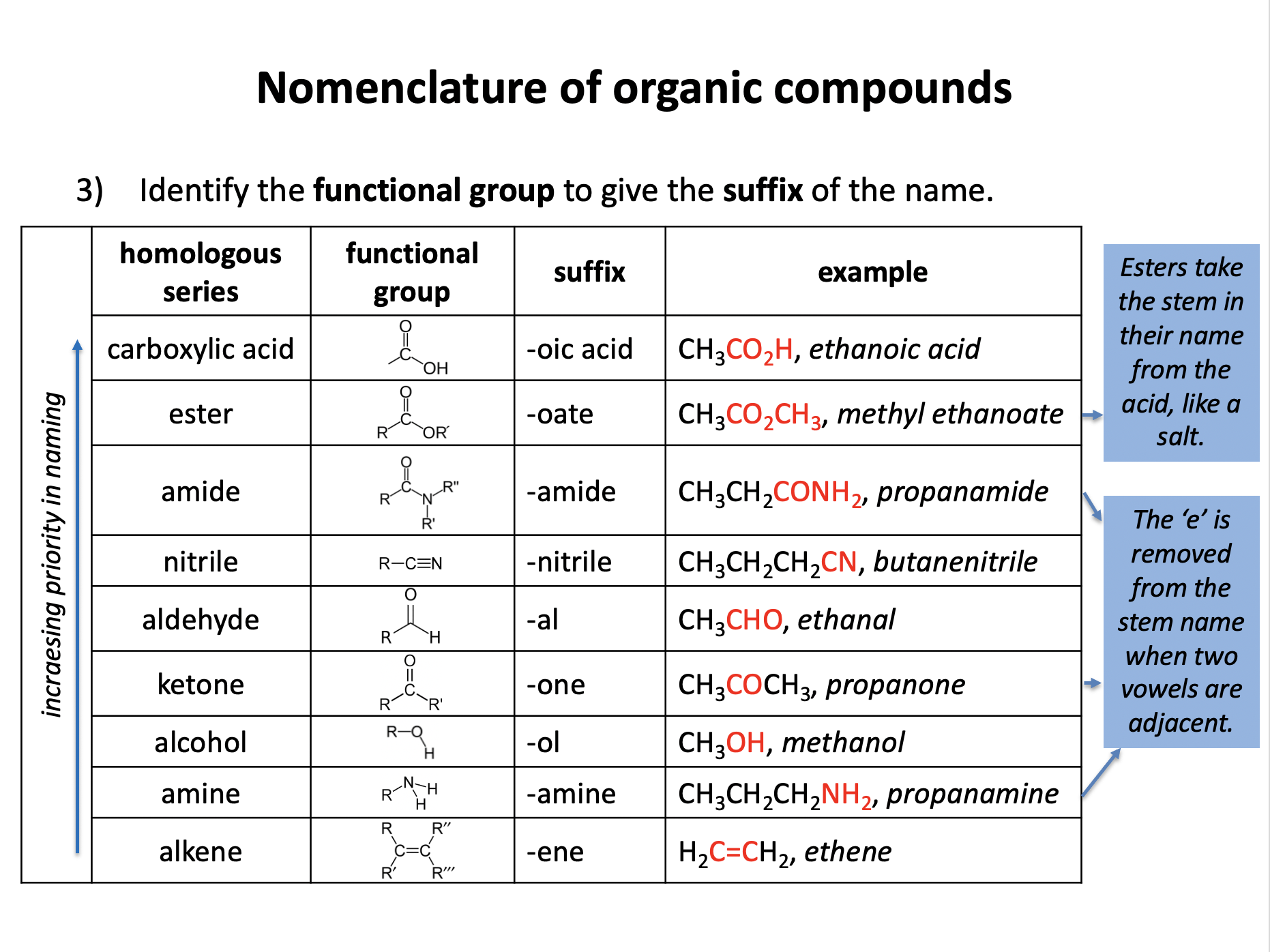 It is important to thoroughly learn all of the functional groups and the classes of compounds by heart,a nd to be confident in drawing out displayed formulae from structural formula.