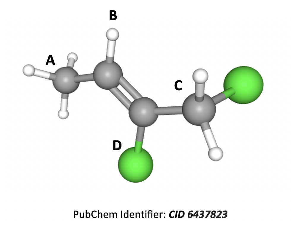 The compound shown below, 1,2-dichlorobut-2-ene, shows E/Z isomerism.