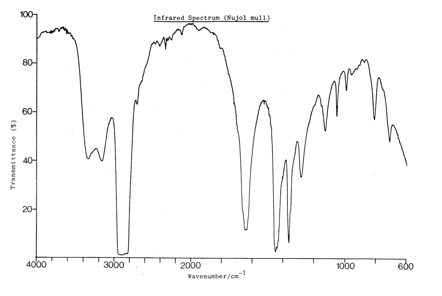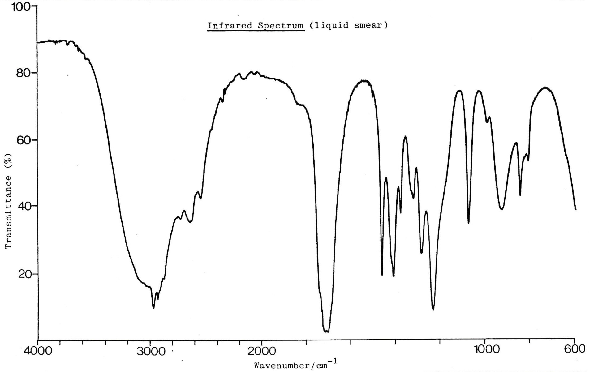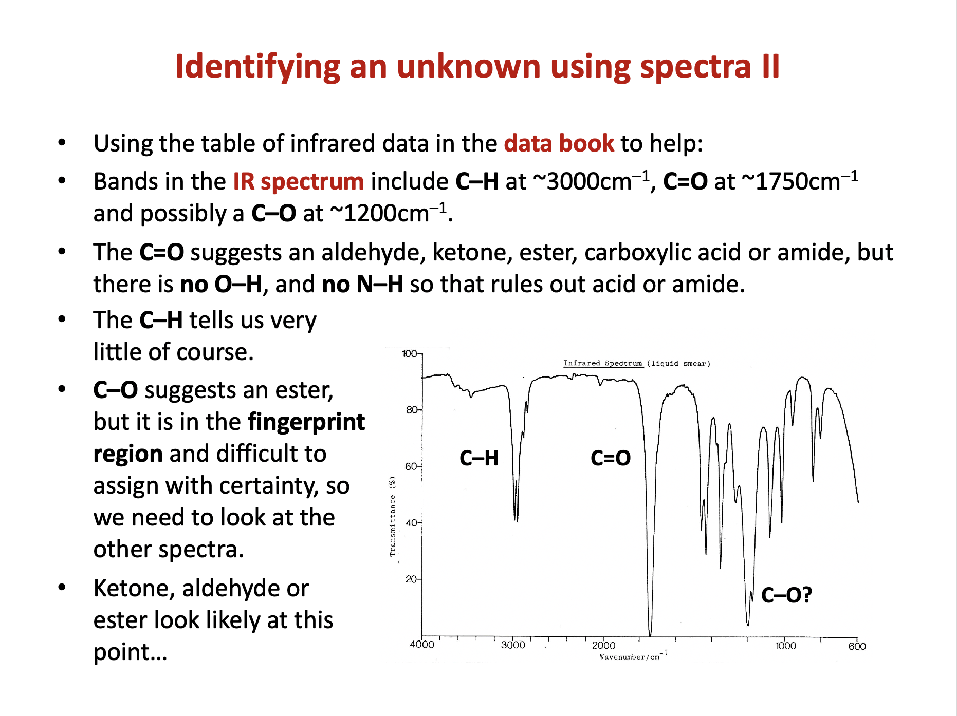 The IR spectrum also shows a characteristic 'overlapping' band at 3000cm−1. This suggests an O−H which is broad and rounded overlapping with the C−H band. This would suggest that the compound is a carboxylic acid.