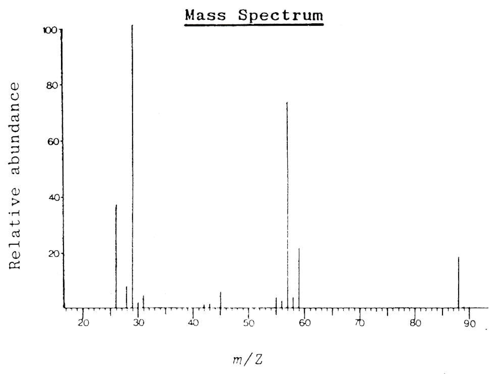 The largest fragment ion peaks are at 29 m/z and 57 m/z.