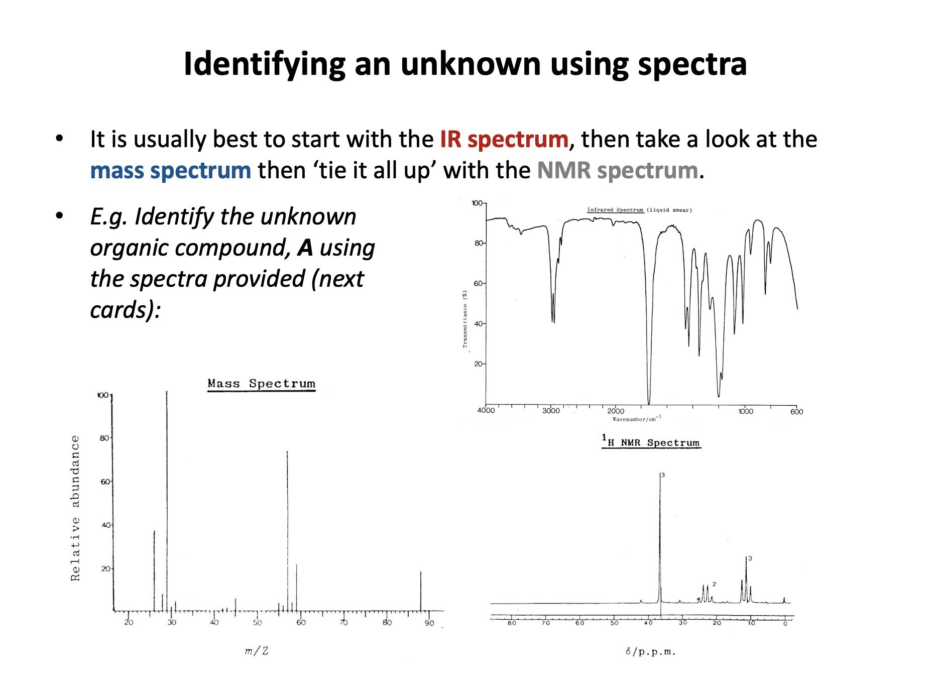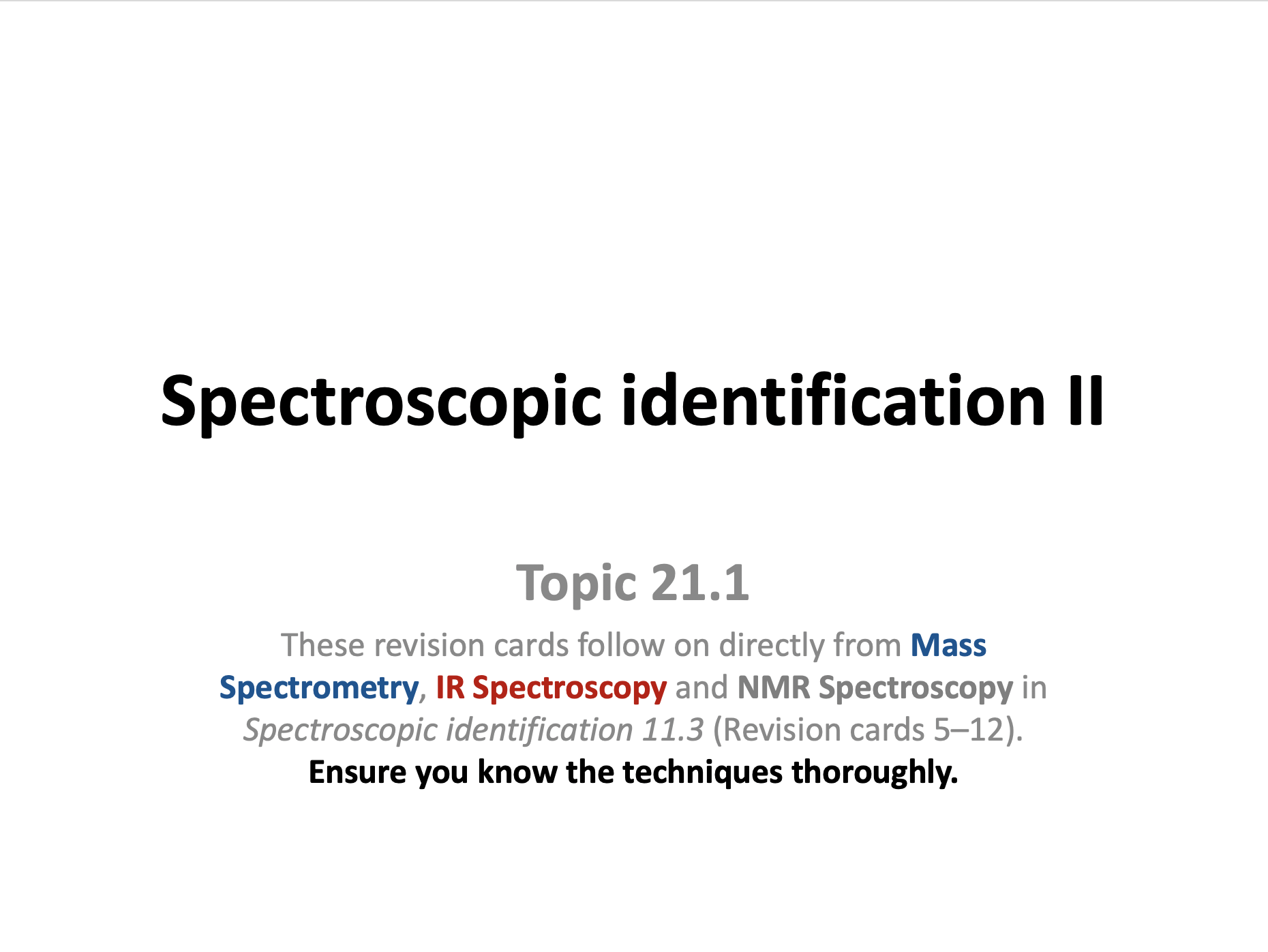 Don't start revising this section of the course until you are confident with Spectroscopic identification 11.3 first, as this section is mostly an extension of the techniques encountered there. Again, it is easier to cope with analytical chemistry if we have a really strong grasp of organic chemistry. In particular, a thorough knowledge of functional groups and nomenclature.