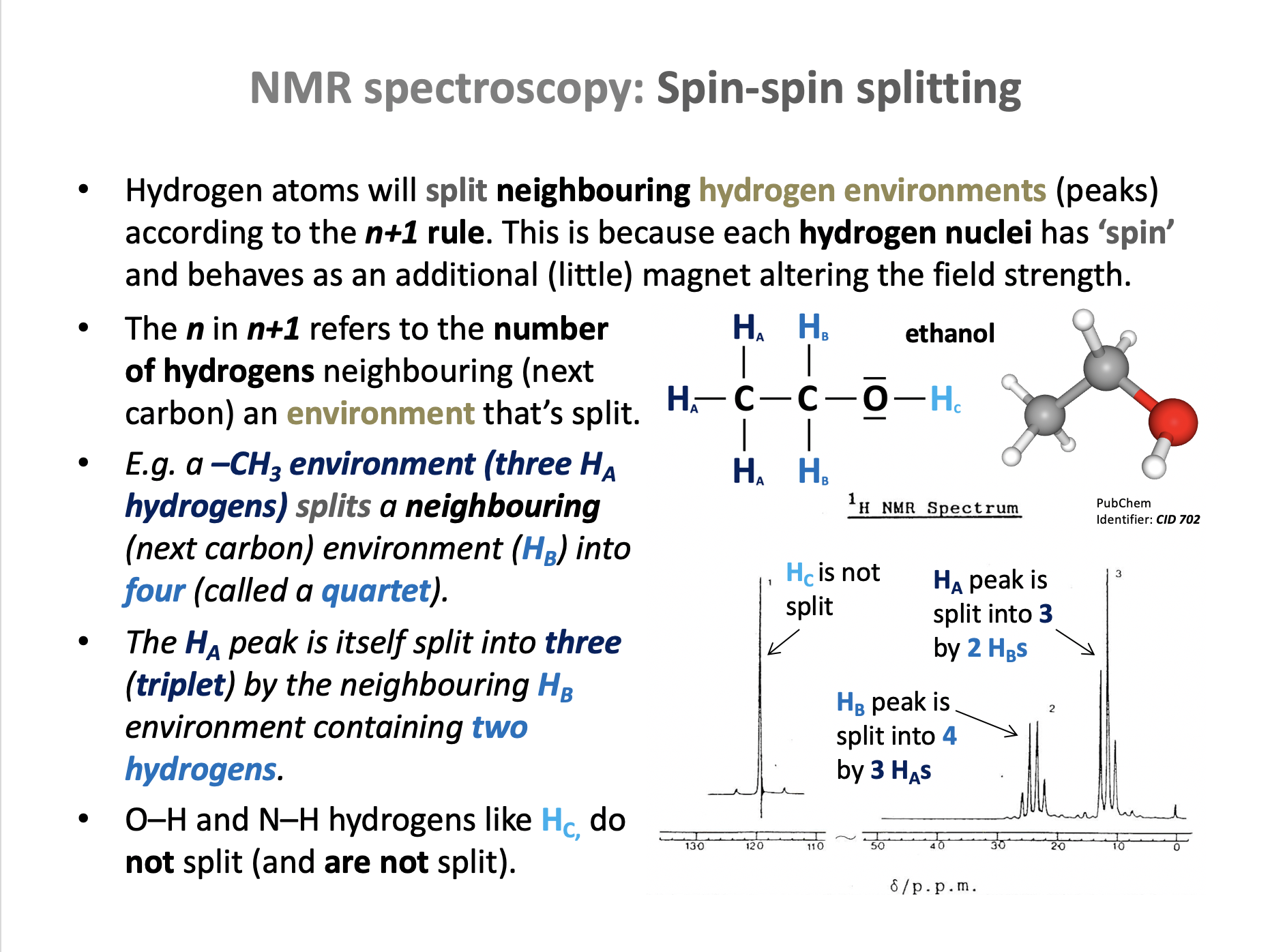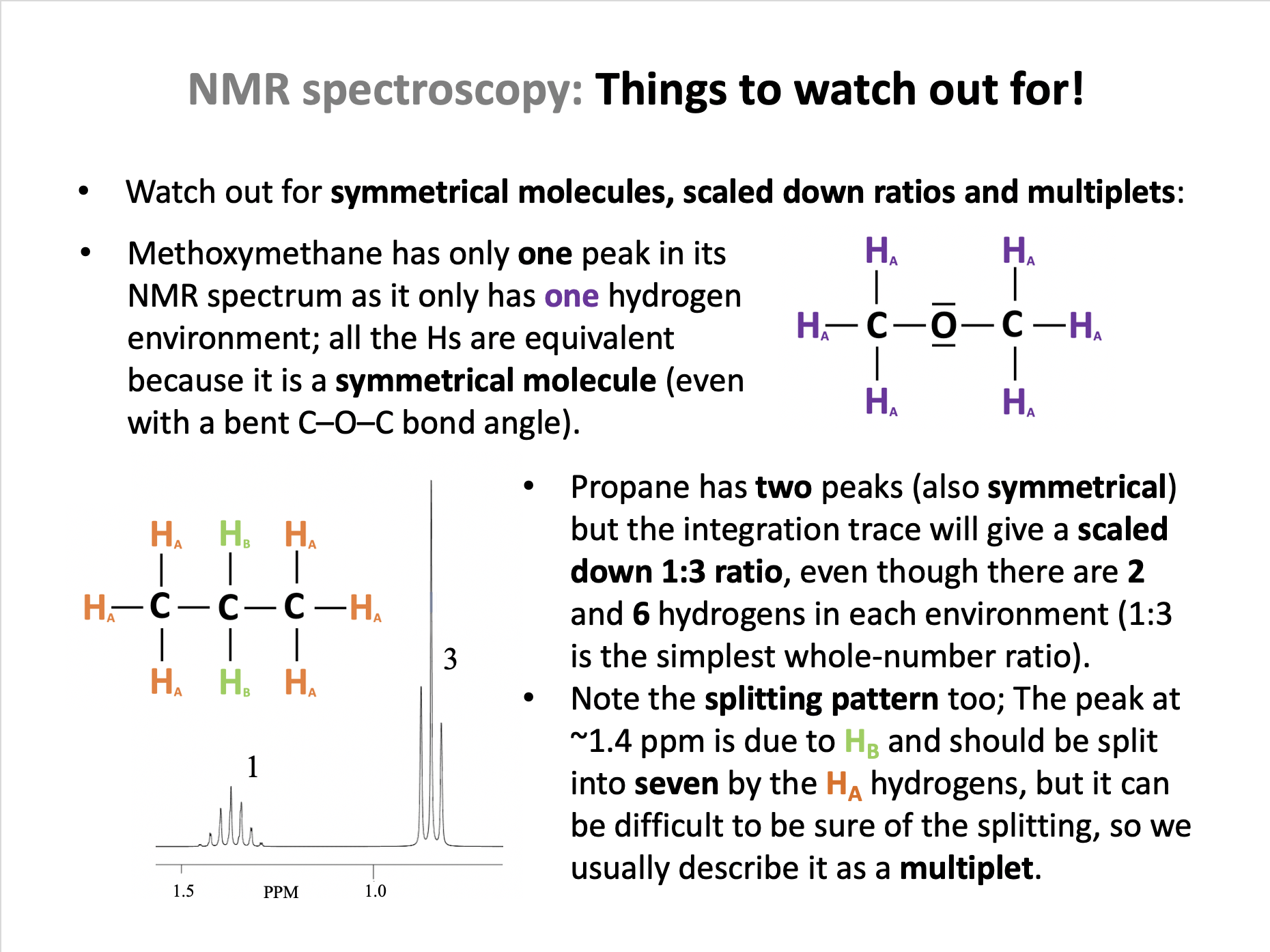 2: The peak at approximately 1.2ppm is a triplet because there are three hydrogens in the environment