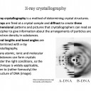 X-ray crystallography is a method of determining crystal structures. X-rays are fired at a crystal sample and diffract to create three dimensional patterns and pictures that crystallographers can read and decipher to give information about the arrangements of particles and electron density in substances: