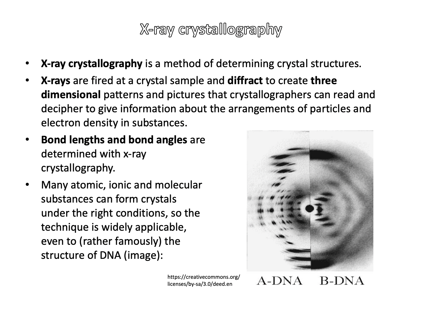 Bond lengths and bond angles are determined with x-ray crystallography.