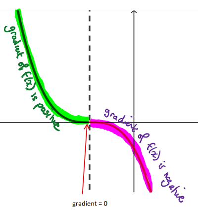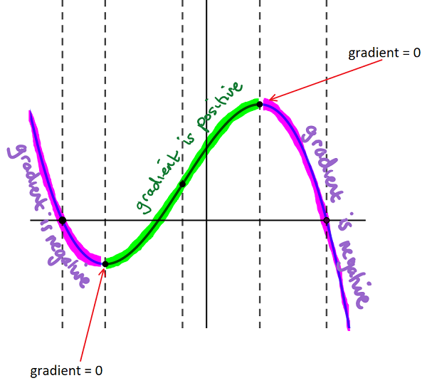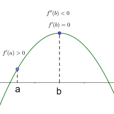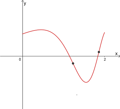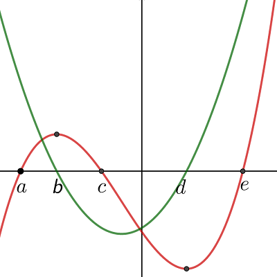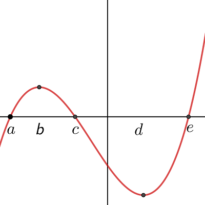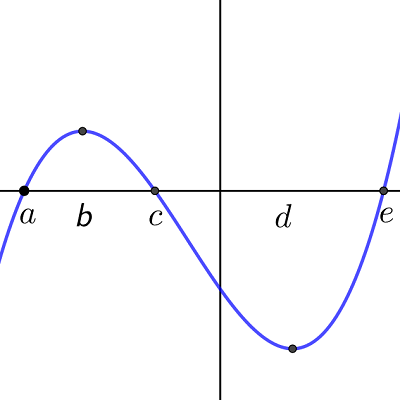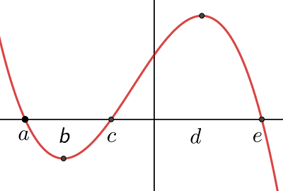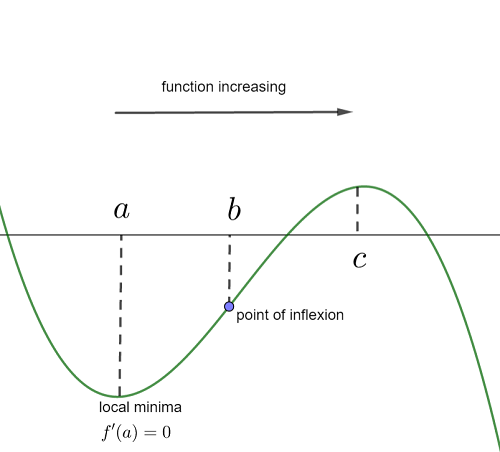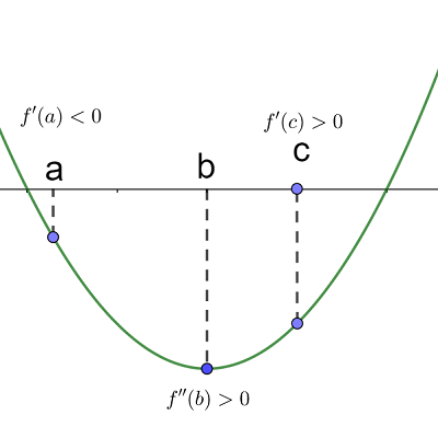 - increasing from x=a to x=c, so \(f(a)<f(b)<f(c)\)