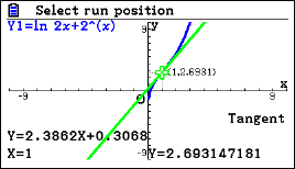 \(\large f'(x) = 2\cos x \\ \large f'(\frac{\pi}{3}) = 2\cos (\frac{\pi}{3}) =2\times\frac{1}{2}=1\)