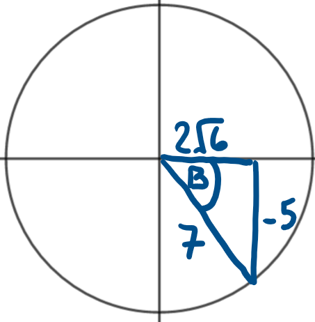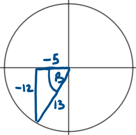 and \(\large \cos B=-\frac{12}{13}\) , where \(\large \pi \le B\le\frac{3\pi}{2}\)