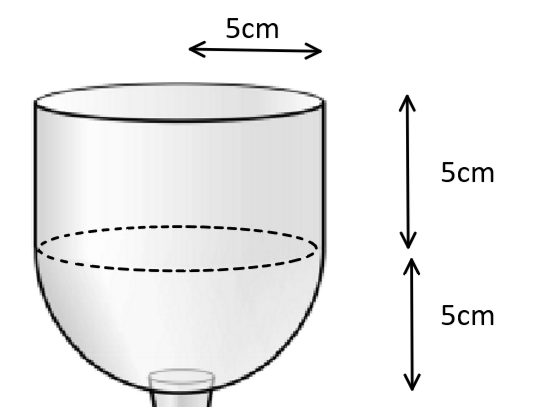 Total Volume\(\large=125\pi+50\pi\\ \large=175\pi\\ \large\approx549.779...cm^3\\ \large\approx550cm^3\)