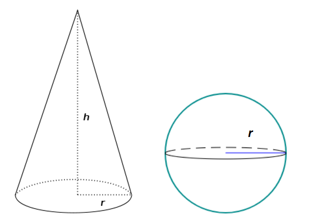 c) Another sphere and cone have the same volume and the same radius, r. Find an equation for the height of the cone, h in terms of r.
