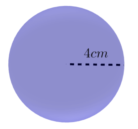 \(\large V=\frac{4}{3}\pi r^3\\ \large V=\frac{4}{3}\pi \times4^3=\frac{256\pi}{3}\)