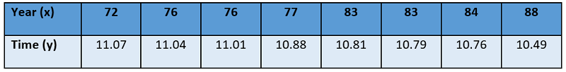The world record times in seconds for the women’s 100m sprint from 1970 onwards are given below