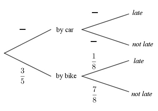 If he travels by bike, the probability that he is late is \(\frac{1}{8}\).