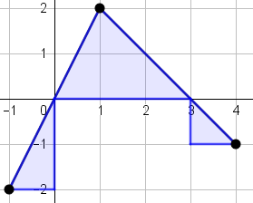 c) f(x) + 2 translates the graph 2 units up. It creates a region the same as \(\int _{ -2 }^{ 2 }{ f(x)dx=5 } \) , but with a rectangle below. The area of the rectangle is 8.