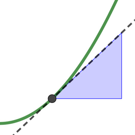 The limit of the gradient of an infinitesimally small secant gives the gradient of the curve. We can describe this using the following formula