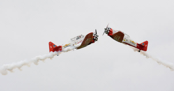 During an air show, two planes, A and B, perform a manoeuvre in which their paths cross in a near miss. The two planes are flying at the same altitude.