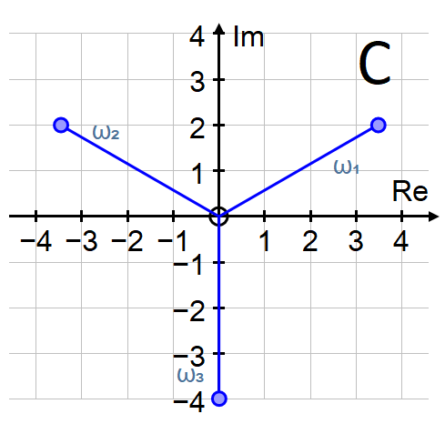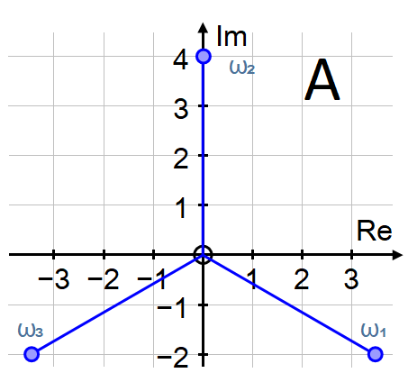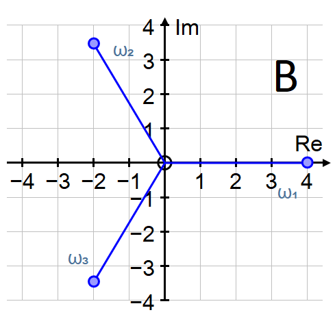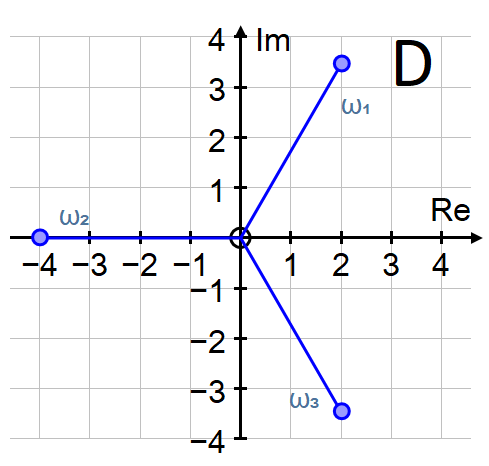 Which of the following Argand diagrams represents the roots to the equation \(z^3=64i\)