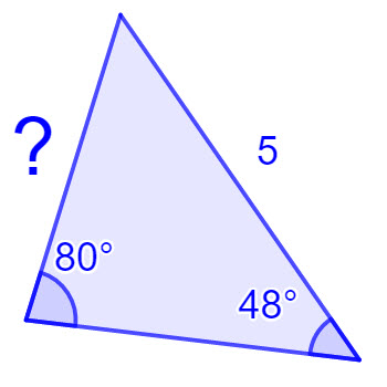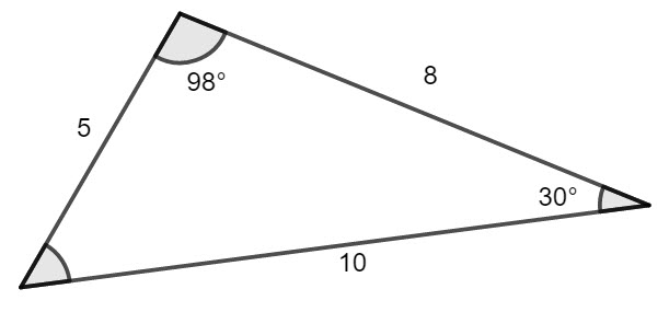 The side with length 8 is opposite the unmarked angle. We calculate 180-30-98 = 52