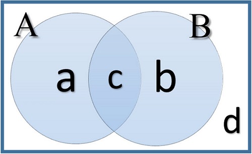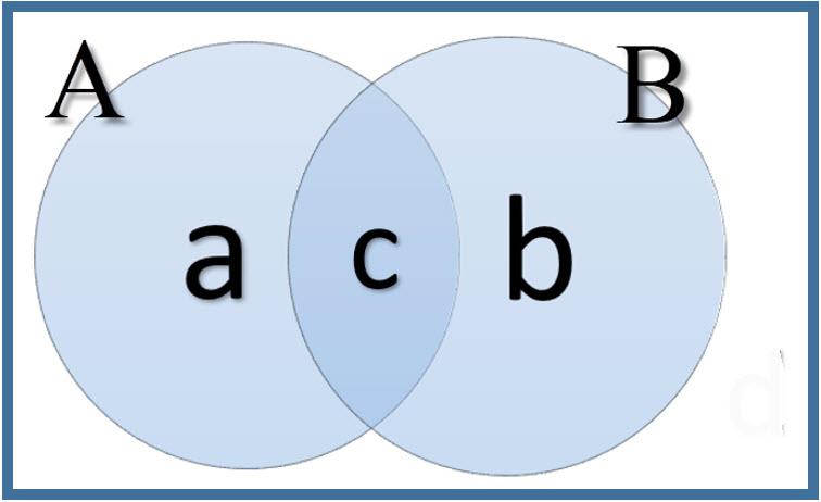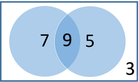 There are 50 students altogether and 12 that take neither Visual Arts nor Business Studies. Hence there are 38 (50 - 12) who take either of the two subjects. Within the 21 students that study Visual Arts there are some that study Business Studies. We find the number in the intersection, c