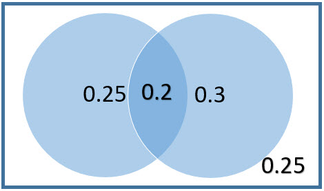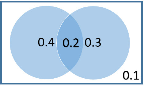\(P(A|B)=\frac { P(A\cap B) }{ P(B) } =\frac{0.2}{0.5}=\frac{2}{5}=0.4\)