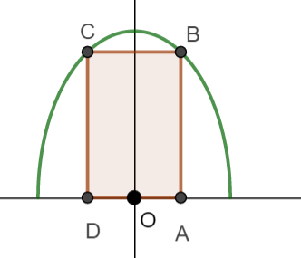 A rectangle ABCD is drawn so that its lower vertices are on the x-axis and its upper vertices are on the curve \(f(x)=\sqrt{6-3x^2}\) as shown in the following diagram