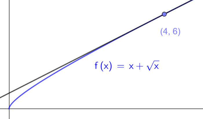 The line L intersects the graph of f at another point Q, as shown below