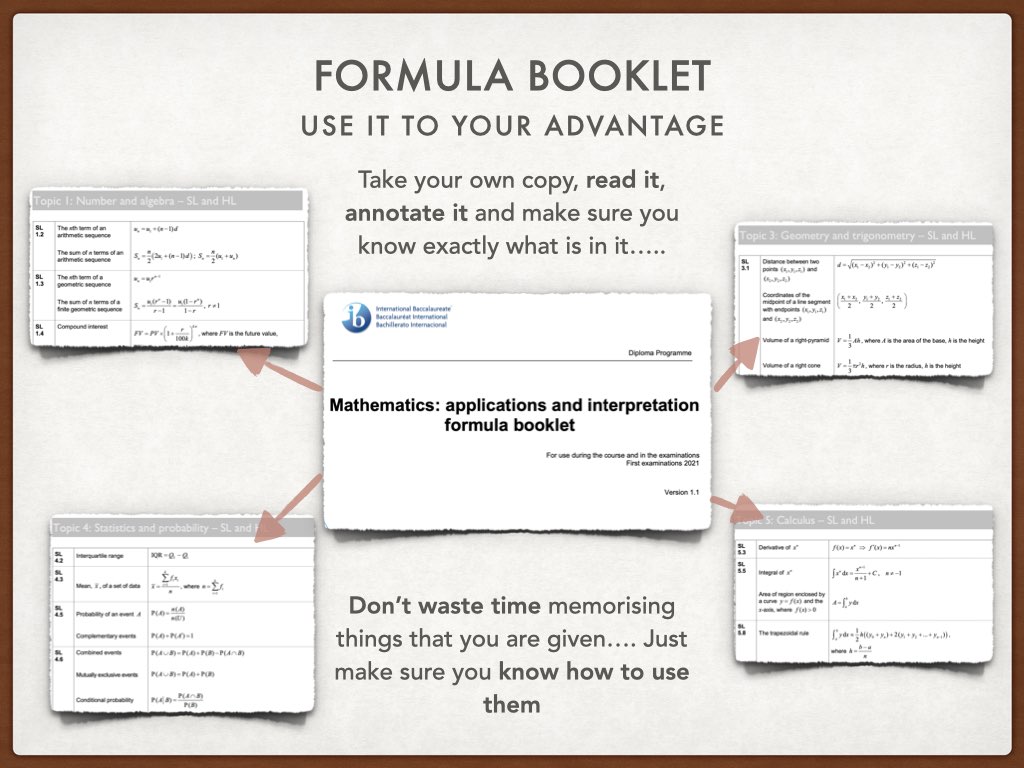 - Don’t waste time memorising things that you are given…. Just make sure you know how to use them