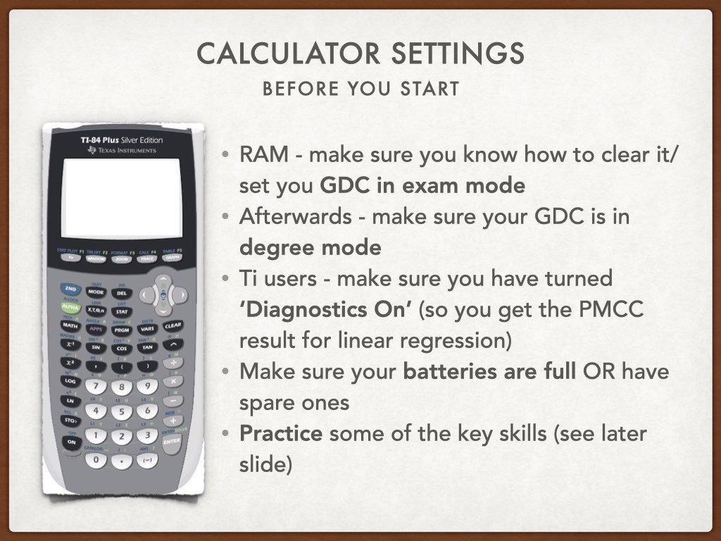 - Ti users - make sure you have turned ‘Diagnostics On’ (so you get the PMCC result for linear regression)
