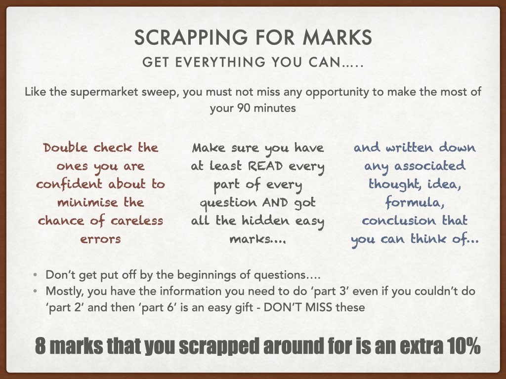 - Make sure you have at least READ every part of every question AND got all the hidden easy marks….