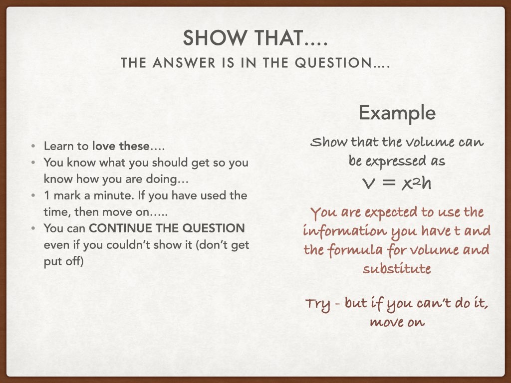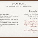 - You can CONTINUE THE QUESTION even if you couldn’t show it (don’t get put off)