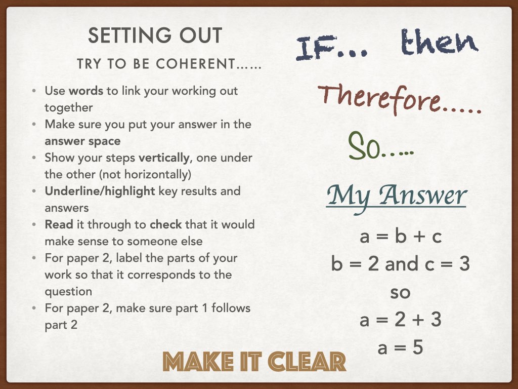 - For paper 2, label the parts of your work so that it corresponds to the question