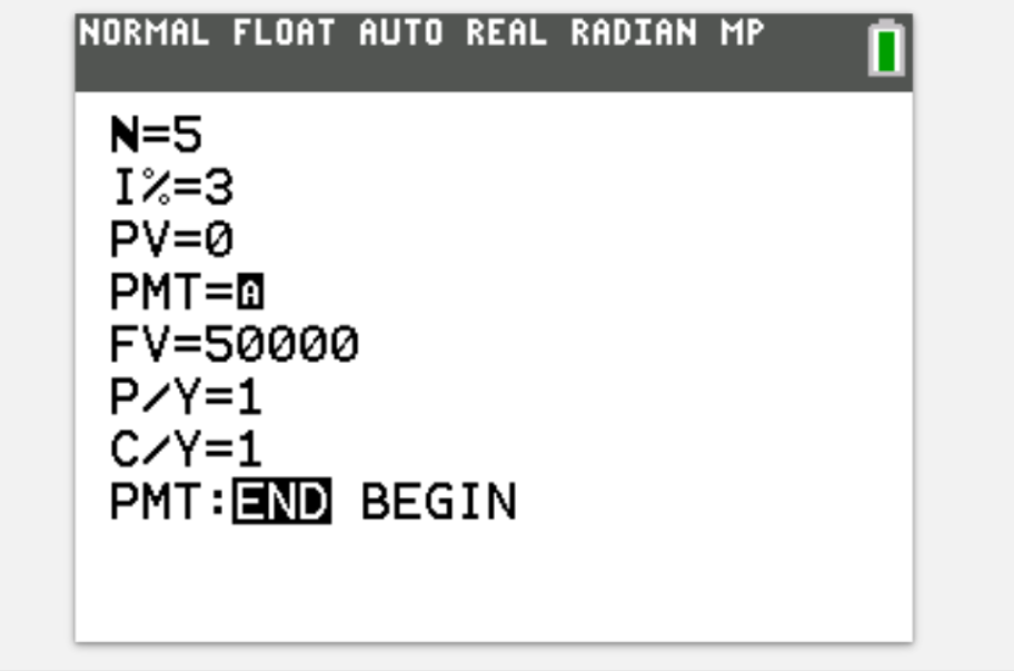 Katie wants to save to put a deposit of $50000 down on a house in five years. She saves every year in an annuity that gives 3% interest. Calculate how much she needs to save each year (to 3sf)