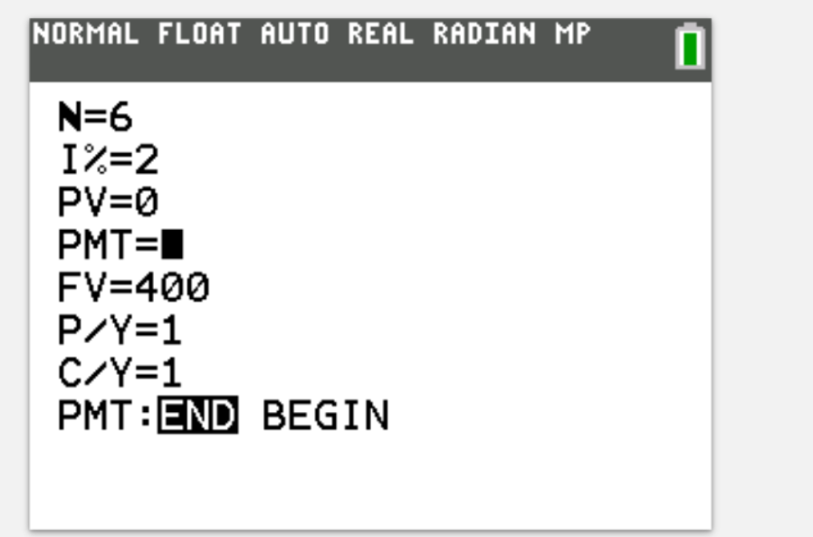 Joe is saving to buy a new pizza oven, which costs $400. He would like to buy it six months time. He saves every month in an annuity that gives 2% interest. How much does he need to save each month? (to 2dp)