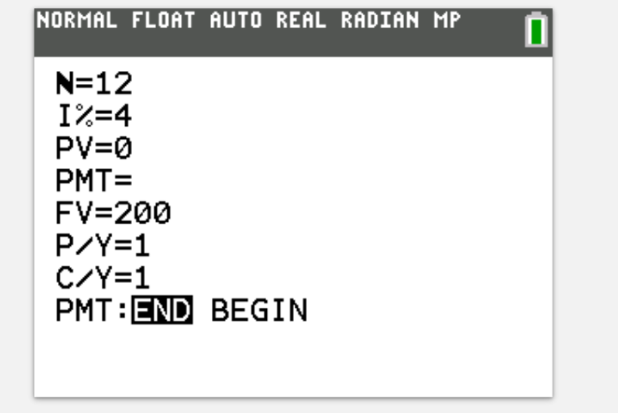 Adrian is saving to buy a record player, which costs $200. He would like to buy it a year's time, and saves every month in an annuity that gives 4% interest. How much does he need to save each month? (to 2dp)