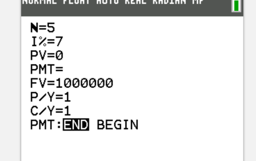 Diane is saving to buy an expensive painting, which is valued at $1,000,000. She would like to buy it in 5 years time and saves each year in an annuity that gives 7% interest. Calculate how much she needs to save each year (to 2 dp)