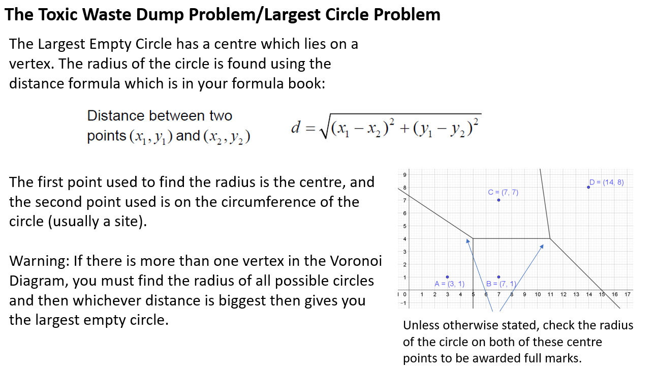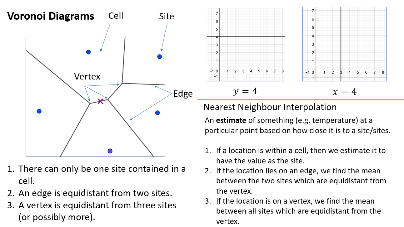 In this fascinating topic, we will delve into the wonderful world of Voronoi diagrams. This includes creating Voronoi diagrams with perpendicular bisectors, adding a new site, nearest neighbour interpolation and the toxic waste dump problem. I hope you enjoy applying mathematics to the real world in this rich and interesting area of the course
