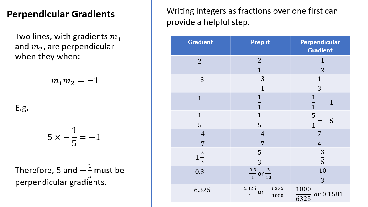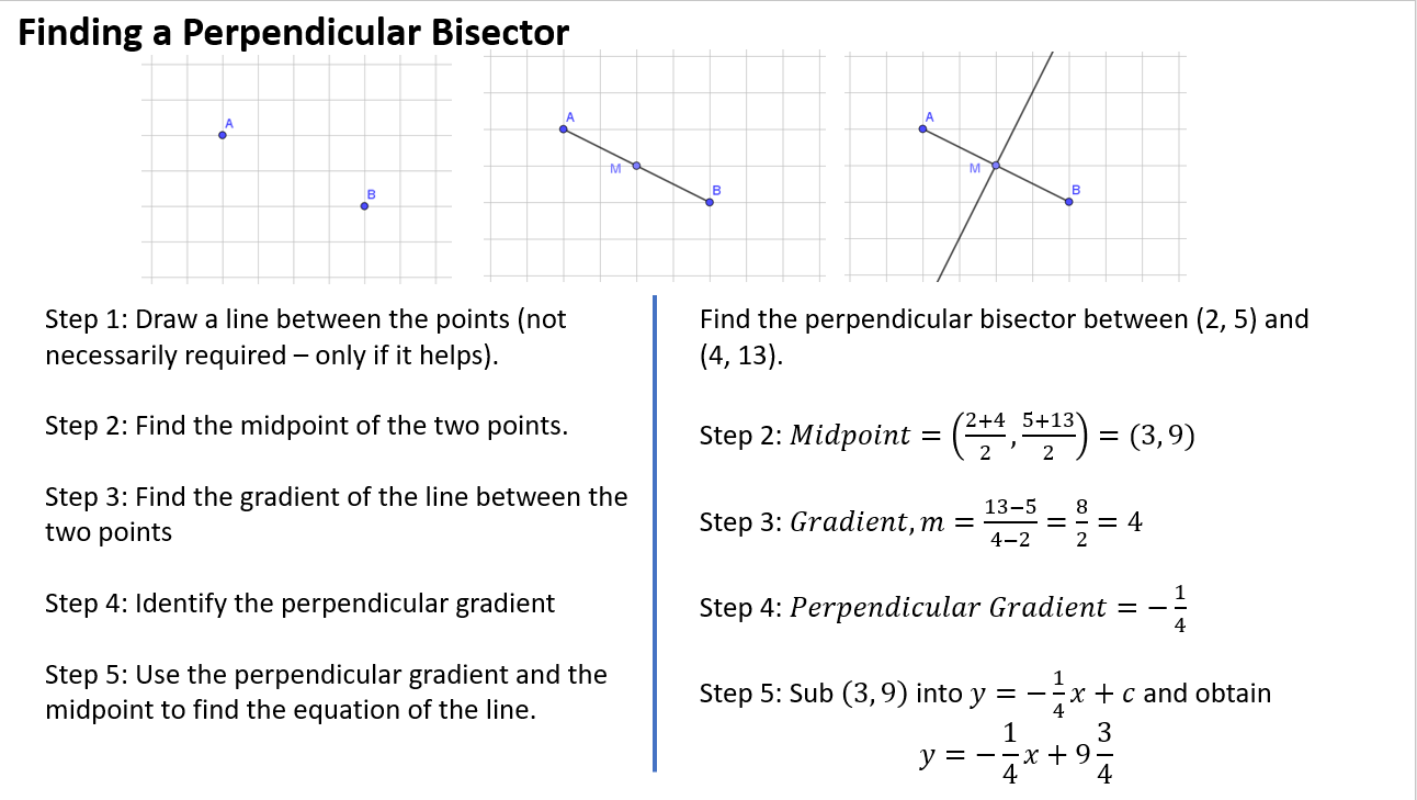Be able to find perpendicular gradients and hence a perpendicular bisector between two points.
