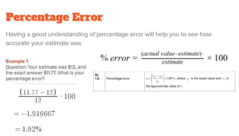 When numbers are reported in the news, or as statistical results, they are either displayed exactly, or they are rounded to a certain degree of accuracy. Understanding how and when to do this can give us a deeper insight into the important numbers we run into in our daily lives. When numbers are estimated, it leads to a lack of accuracy, the size of which can be represented by the percentage error. We will also learn how to find this in this chapter.