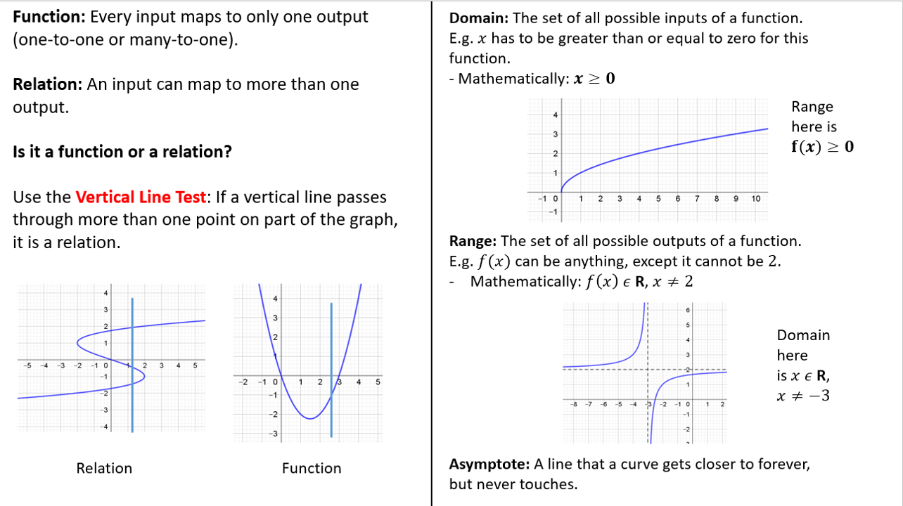 Functions are extraordinary algebraic and visual tools which allow us to understand and analyse relationships. In this section you will learn exactly what a function is and how to find a function's inverse, alongside developing a more nuanced sense of important aspects of functions, such as domain and range.