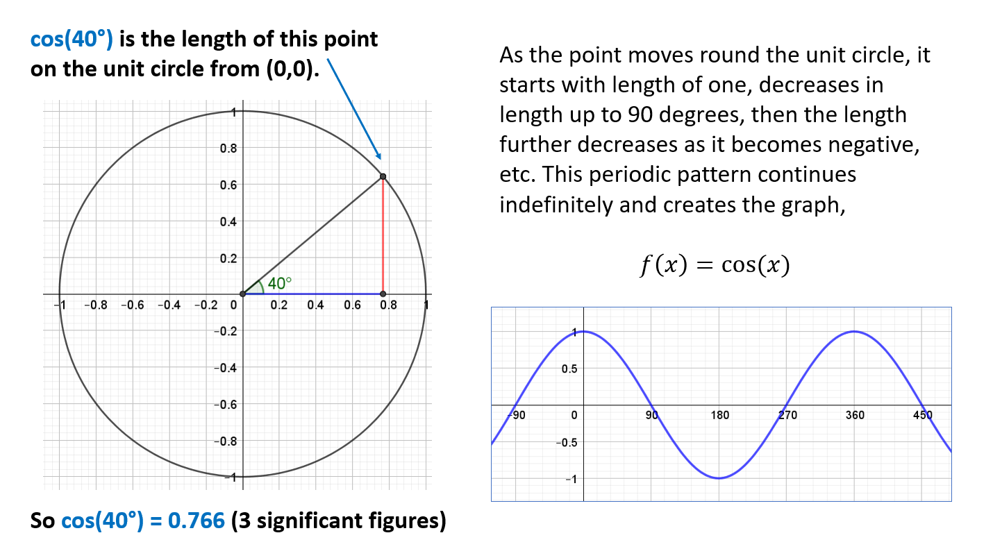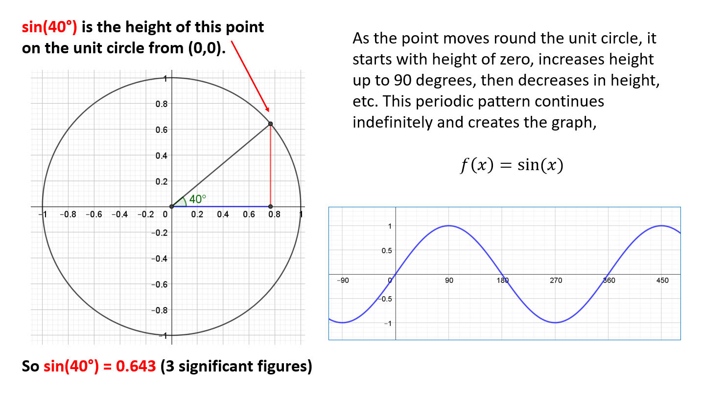 - Understand what sine and cosine are and where the sine and cosine graphs come from.