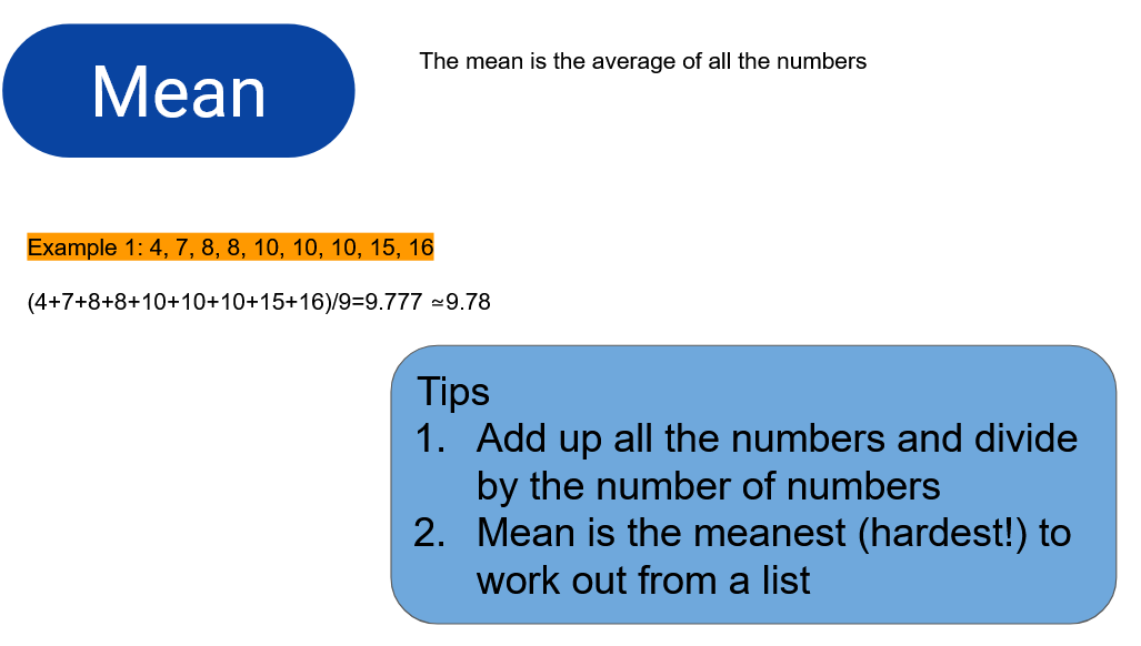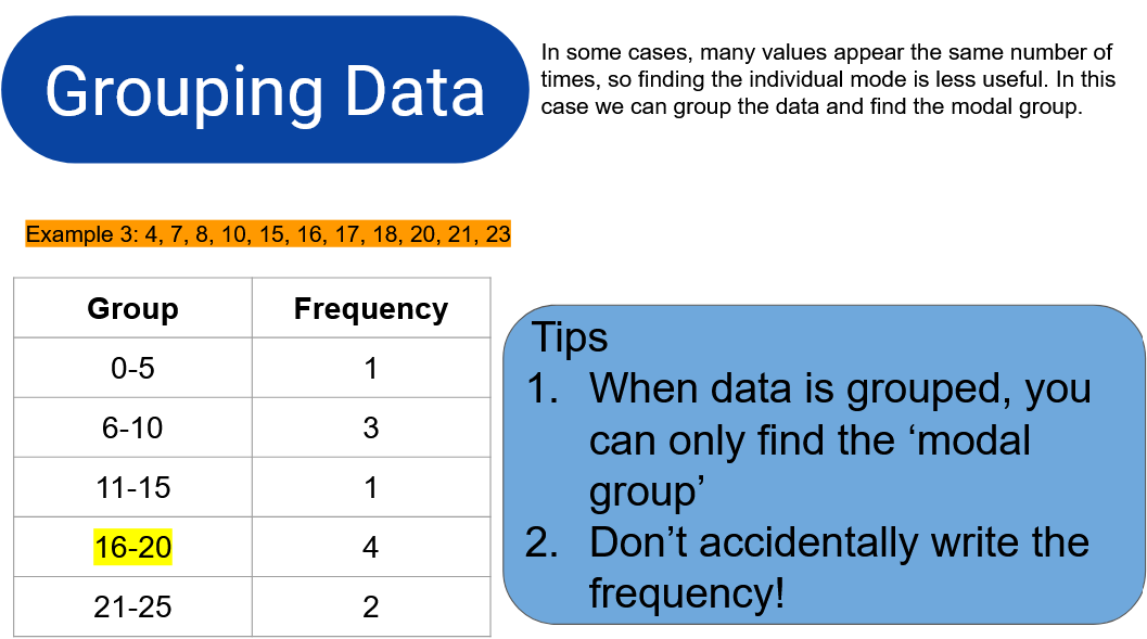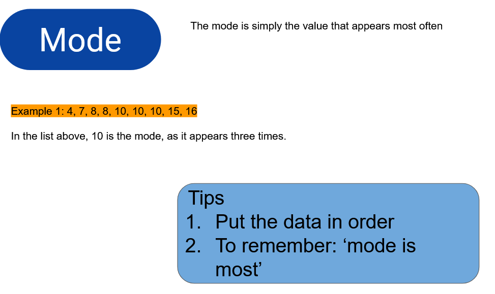- Find the mode, median and mean of a set of data