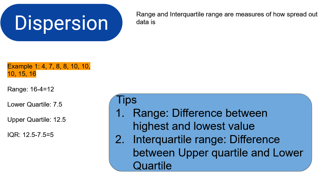 - Find the range and interquartile range of a set of data
