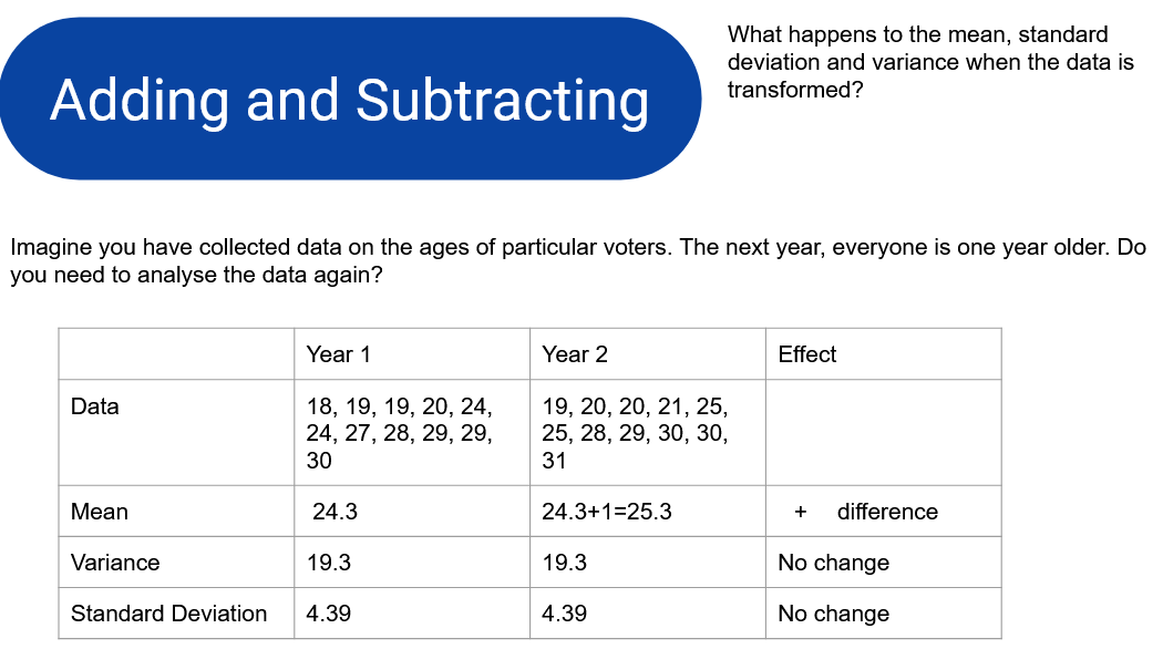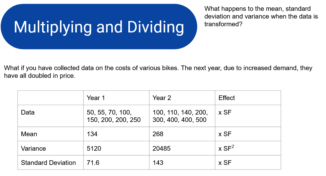 - Know what happens to the summary statistics when data is transformed.